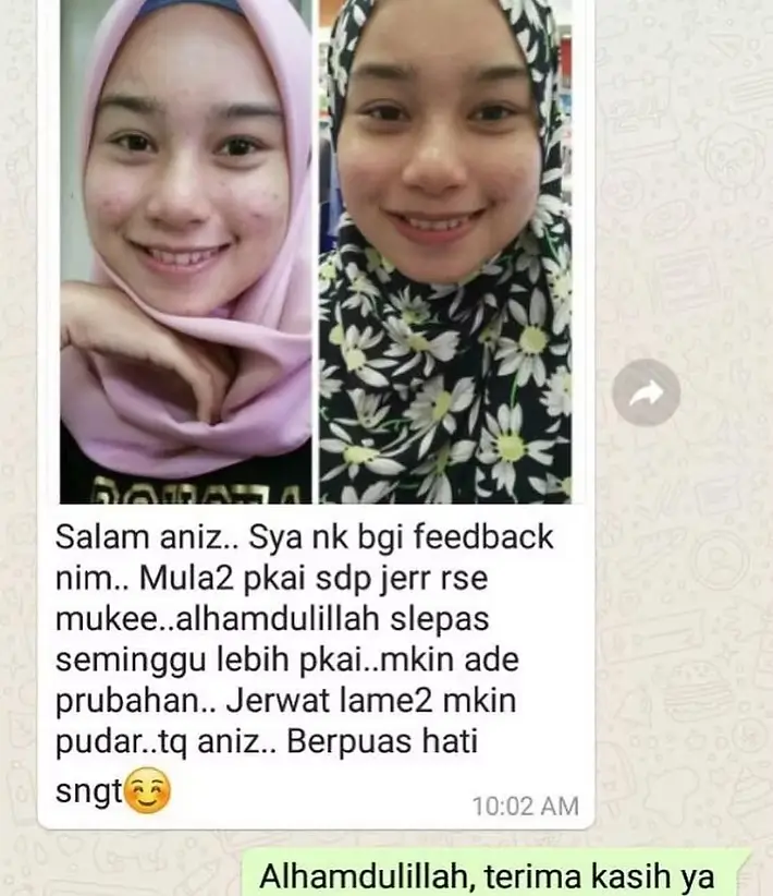 Keputusan individu mungkin berbeza. Testimoni yang dikongsi adalah pengalaman sebenar pelanggan, tetapi tidak semestinya mewakili pengalaman tipikal semua pengguna. Hasil bergantung kepada keadaan kulit, tahap penggunaan secara konsisten, serta faktor individu lain.