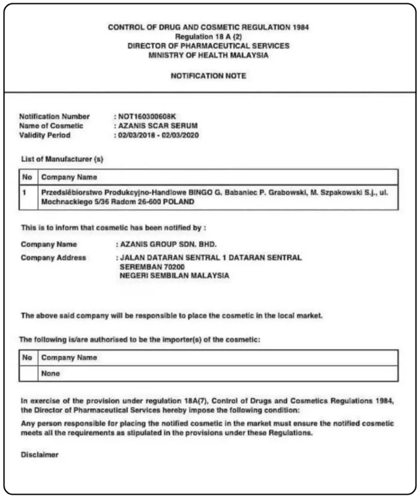 Ada. Azanis Scar Serum Pro Series berdaftar dengan KKM (NOT250800921K) dan bebas bahan berbahaya.